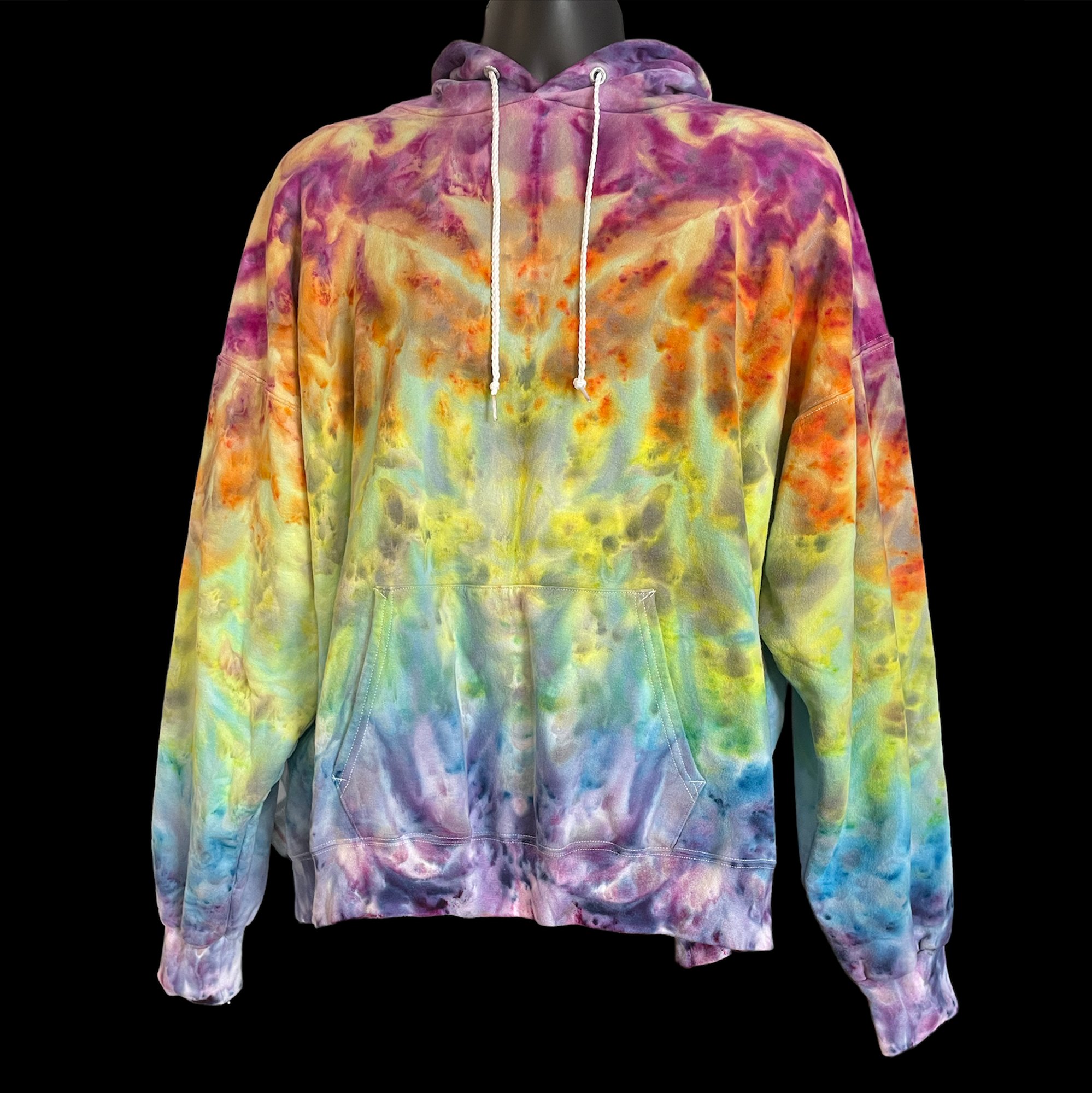 RAINBOW GRADIENT MELT TIE DYE HOODIE SIZE XL